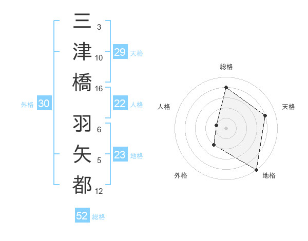 三津橋 羽矢都さんの総格は52画の4点