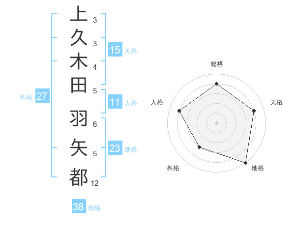 上久木田 羽矢都さんを姓名の画数から五運を鑑定