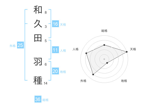 和久田 羽種さんを姓名の画数から五運を鑑定