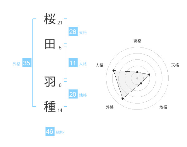 桜田 羽種さんを姓名の画数から五運を鑑定