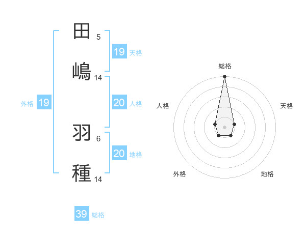 田嶋 羽種さんの総格は39画の5点!