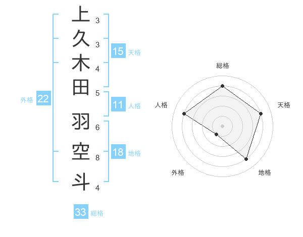 上久木田 羽空斗さんを姓名の画数から五運を鑑定