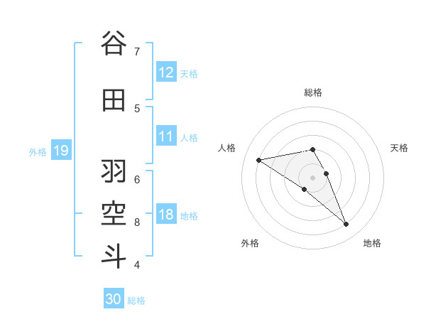谷田 羽空斗さんを姓名の画数から五運を鑑定
