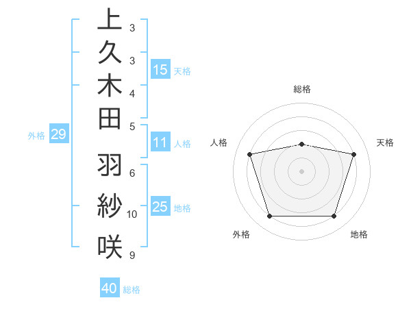 上久木田 羽紗咲さんを姓名の画数から五運を鑑定