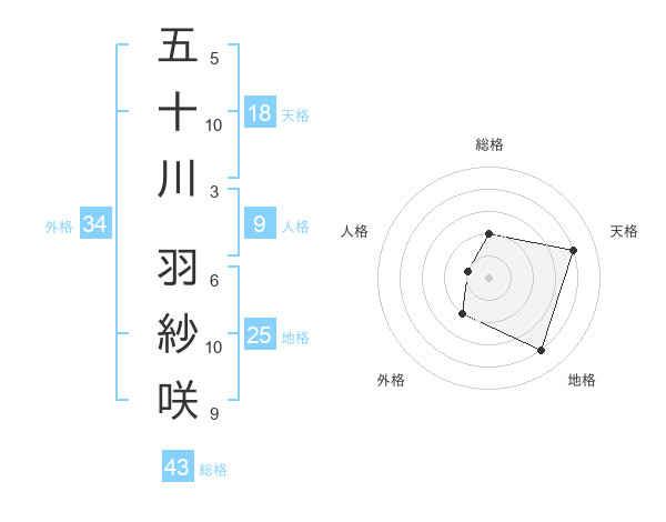 五十川 羽紗咲さんを姓名の画数から五運を鑑定