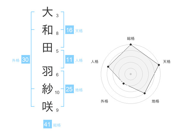大和田 羽紗咲さんを姓名の画数から五運を鑑定