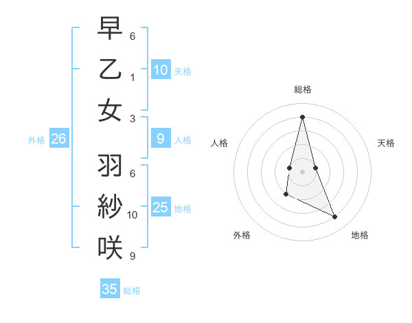 早乙女 羽紗咲さんを姓名の画数から五運を鑑定