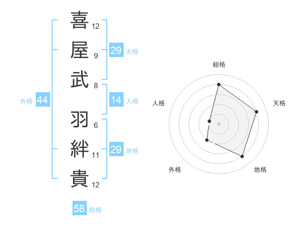 喜屋武 羽絆貴さんの天格は29画の4点!