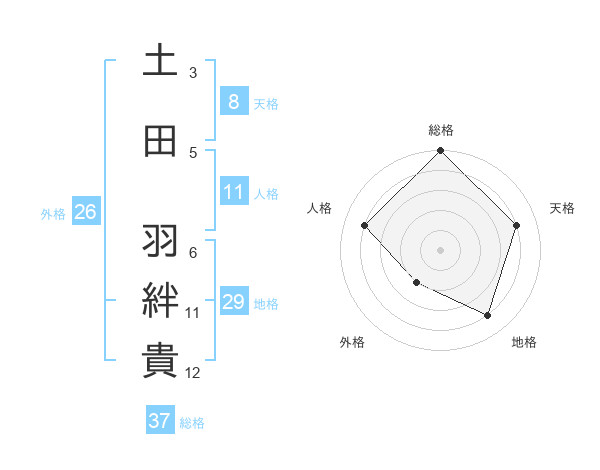 土田 羽絆貴さんを姓名の画数から五運を鑑定