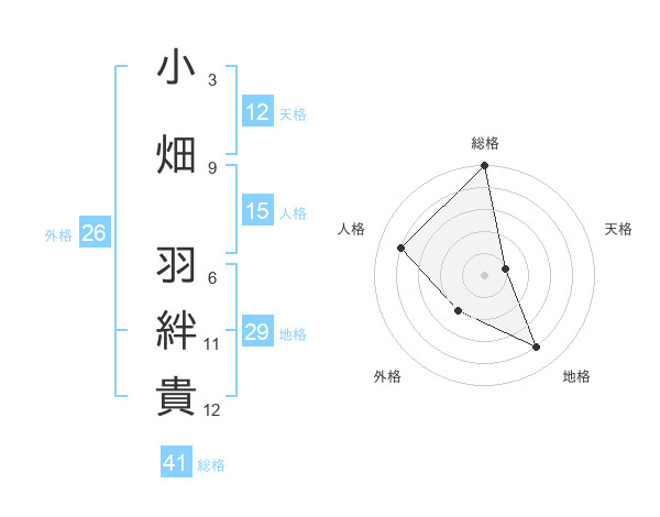 小畑 羽絆貴さんを姓名の画数から五運を鑑定
