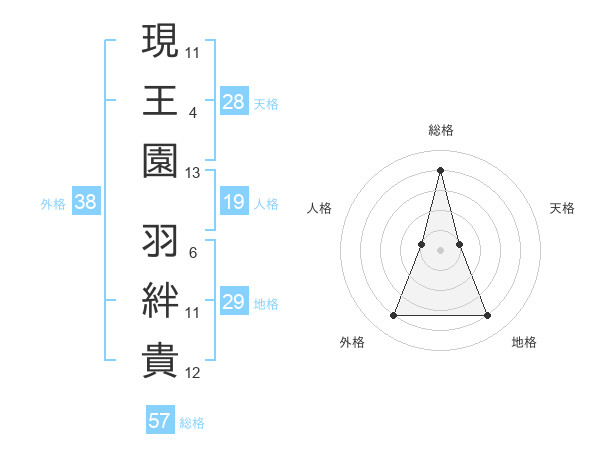 現王園 羽絆貴さんの外格は38画の4点!