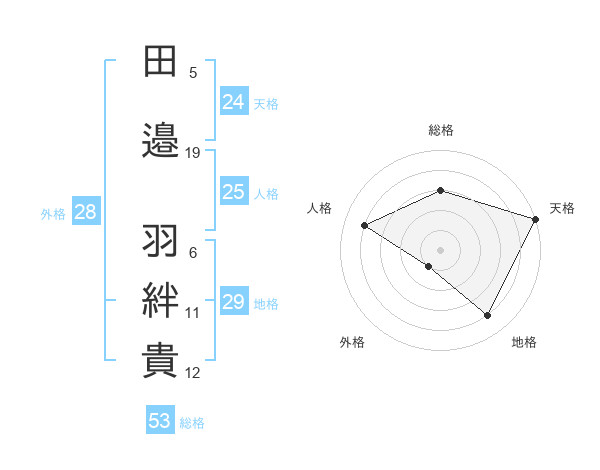 田邉 羽絆貴さんを姓名の画数から五運を鑑定