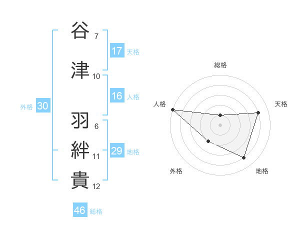 谷津 羽絆貴さんを姓名の画数から五運を鑑定