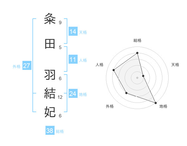 粂田 羽結妃さんの総格は38画の4点!