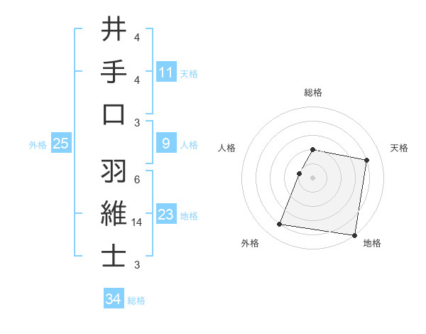 井手口 羽維士さんの総格は34画の2点!