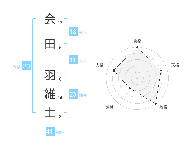 会田 羽維士さんの総格は41画の5点!