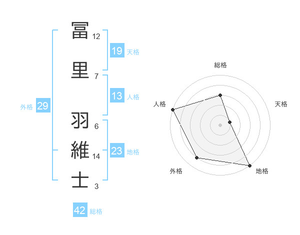 冨里 羽維士さんを姓名の画数から五運を鑑定