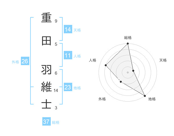 重田 羽維士さんを姓名の画数から五運を鑑定