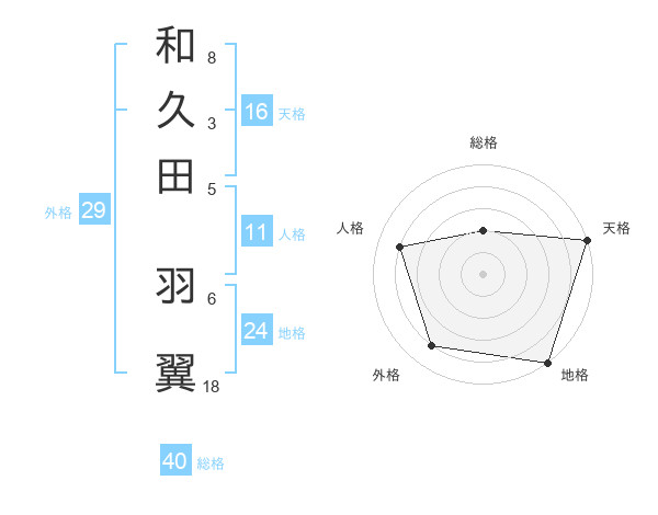 和久田 羽翼さんを姓名の画数から五運を鑑定