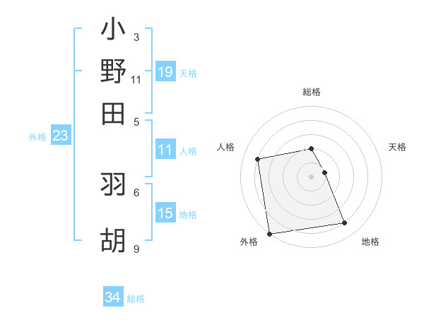 小野田 羽胡さんを姓名の画数から五運を鑑定