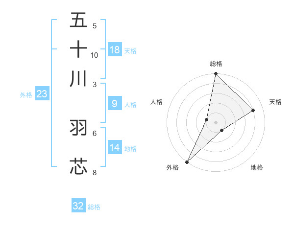 五十川 羽芯さんを姓名の画数から五運を鑑定