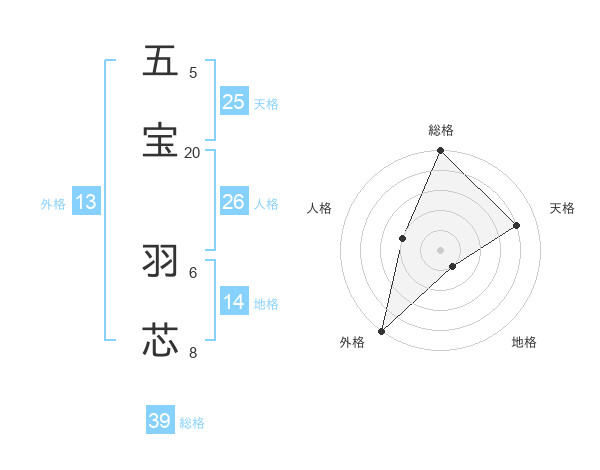 五宝 羽芯さんを姓名の画数から五運を鑑定