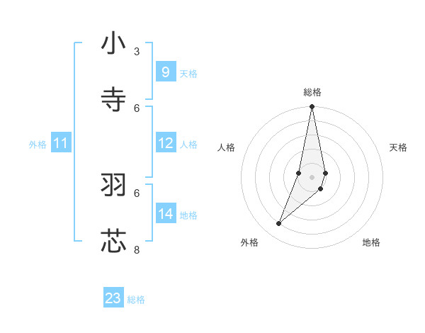小寺 羽芯さんの総格は23画の5点!