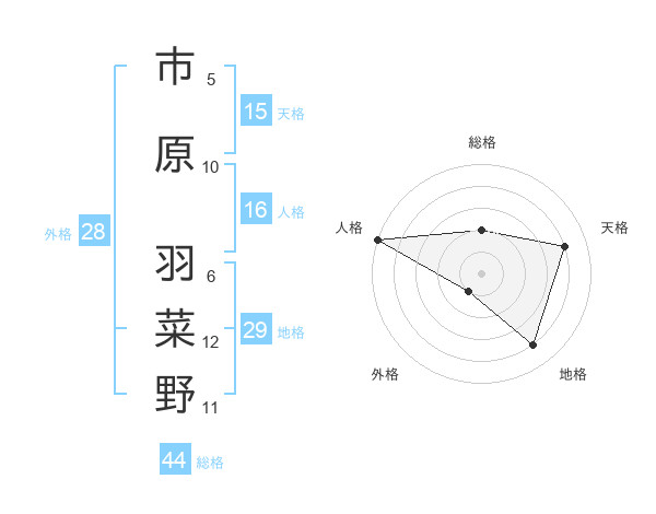 市原 羽菜野さんを姓名の画数から五運を鑑定