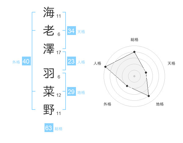 海老澤 羽菜野さんの総格は63画の4点!
