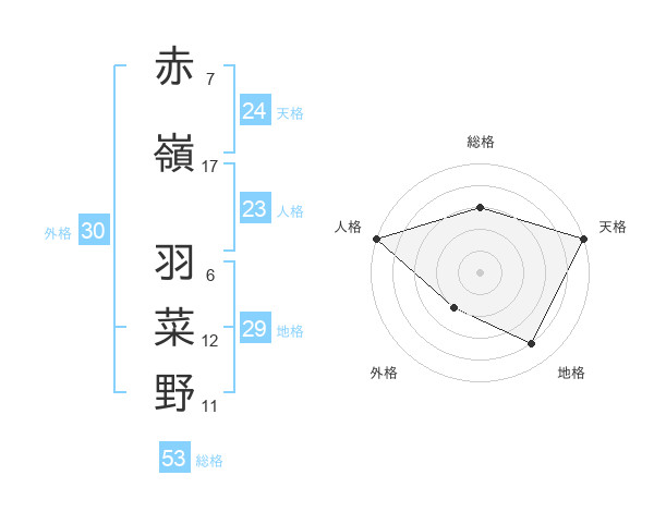 赤嶺 羽菜野さんを姓名の画数から五運を鑑定