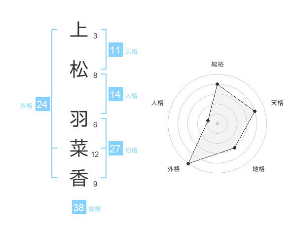 上松 羽菜香さんを姓名の画数から五運を鑑定
