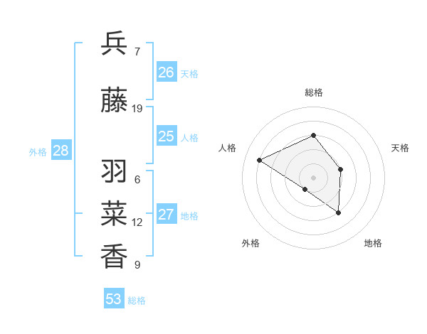 兵藤 羽菜香さんを姓名の画数から五運を鑑定
