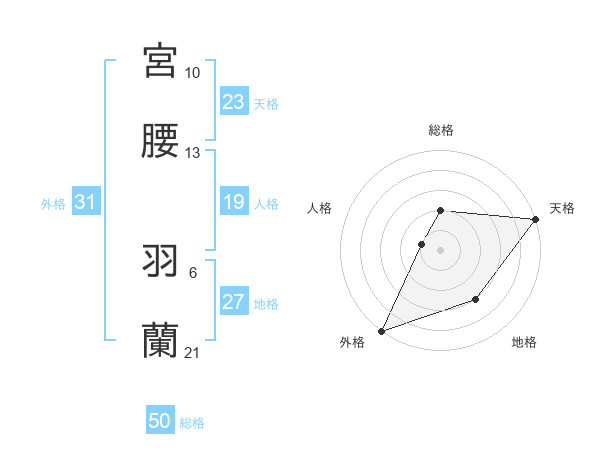 宮腰 羽蘭さんを姓名の画数から五運を鑑定