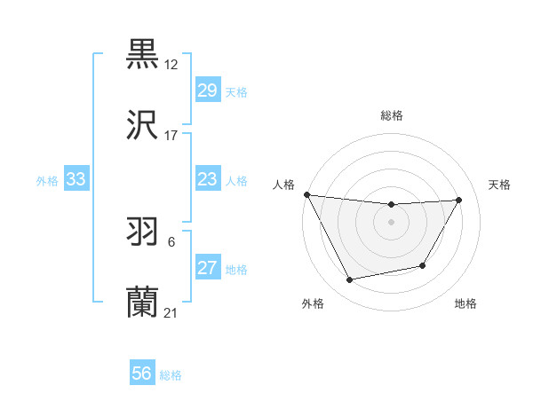 黒沢 羽蘭さんを姓名の画数から五運を鑑定