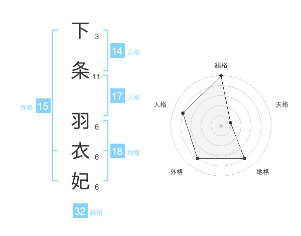 下条 羽衣妃さんの総格は32画の5点!