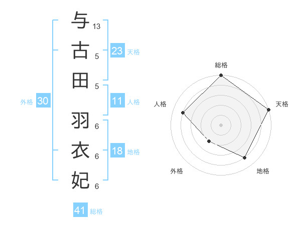 与古田 羽衣妃さんを姓名の画数から五運を鑑定