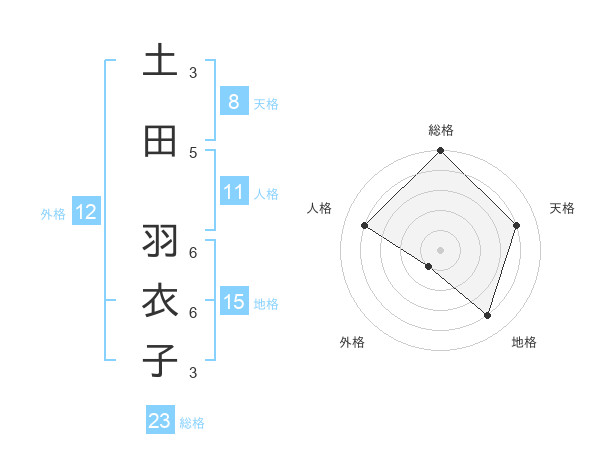 土田 羽衣子さんの総格は23画の5点!