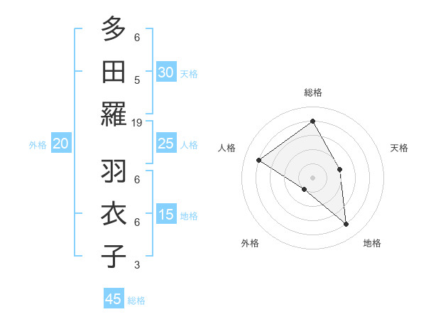 多田羅 羽衣子さんの総格は45画の4点!