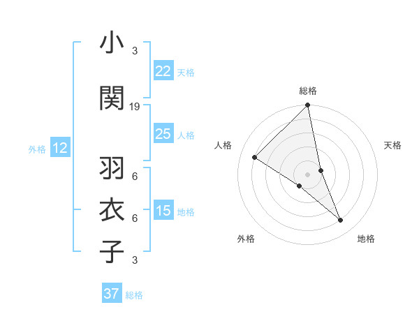 小関 羽衣子さんを姓名の画数から五運を鑑定