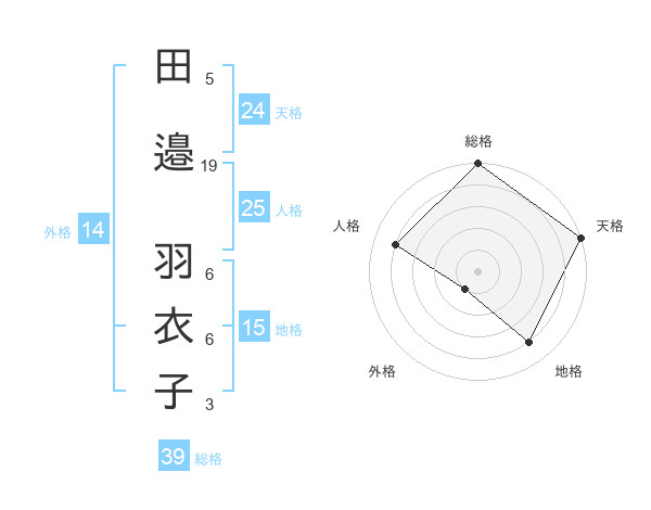 田邉 羽衣子さんを姓名の画数から五運を鑑定