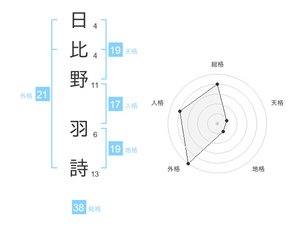 日比野 羽詩さんを姓名の画数から五運を鑑定