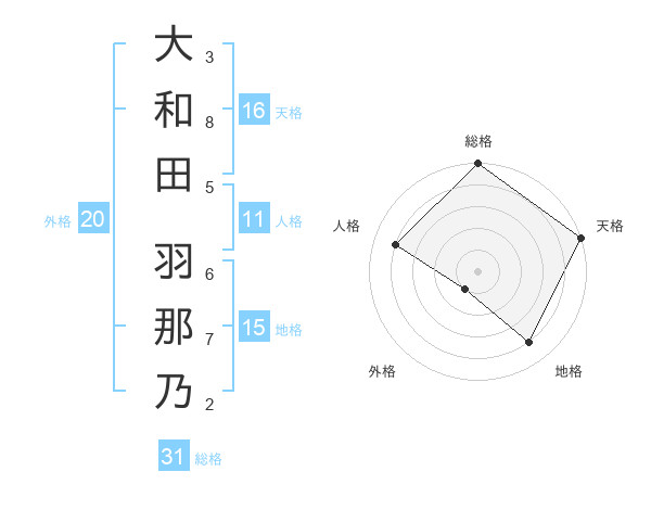 大和田 羽那乃さんを姓名の画数から五運を鑑定
