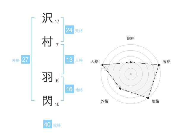 沢村 羽閃さんの総格は40画の2点!