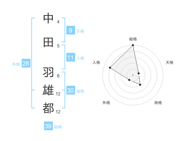 中田 羽雄都さんを姓名の画数から五運を鑑定