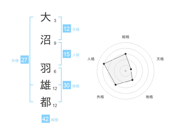 大沼 羽雄都さんを姓名の画数から五運を鑑定