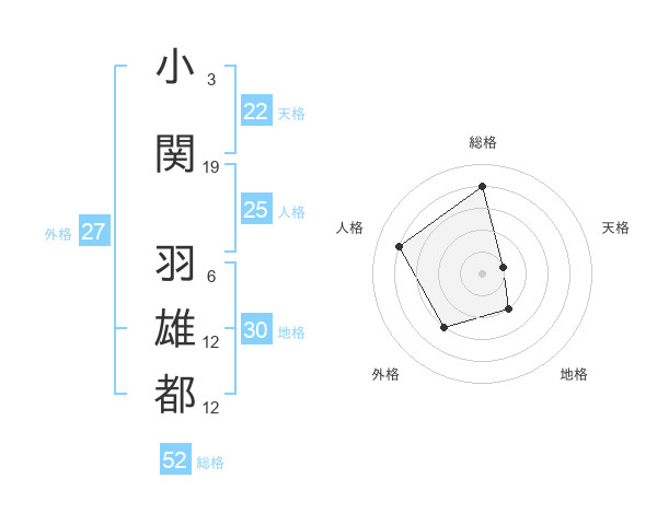 小関 羽雄都さんを姓名の画数から五運を鑑定
