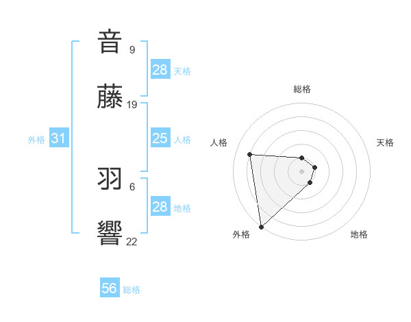 音藤 羽響さんの総格は56画の1点!