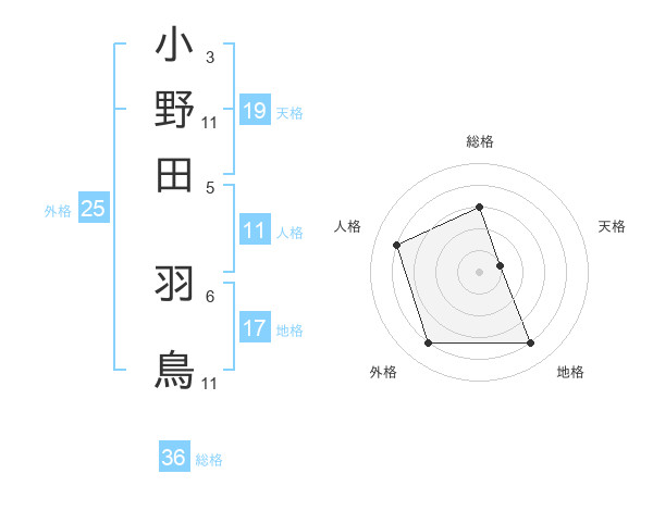 小野田 羽鳥さんを姓名の画数から五運を鑑定