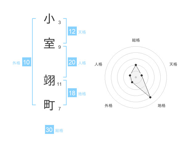 小室 翊町さんの総格は30画の2点