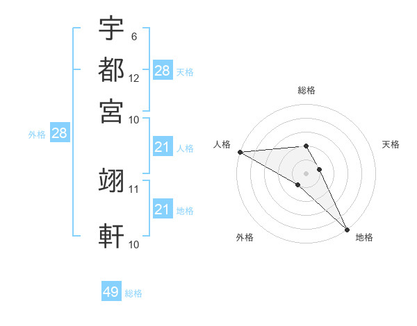 宇都宮 翊軒さんを姓名の画数から五運を鑑定